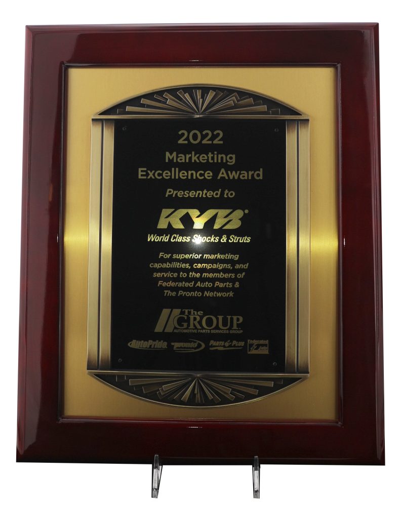 The award was announced at The Group’s National Conference and Expo. Members of Federated Auto Parts and The Pronto Network cast votes to determine the top supplier in several categories, with KYB being recognized as the Marketing Excellence Vendor of the Year.
