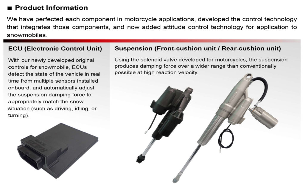 KYB Expands the application of KADSTM, an electronically controlled suspension system for snowmobiles